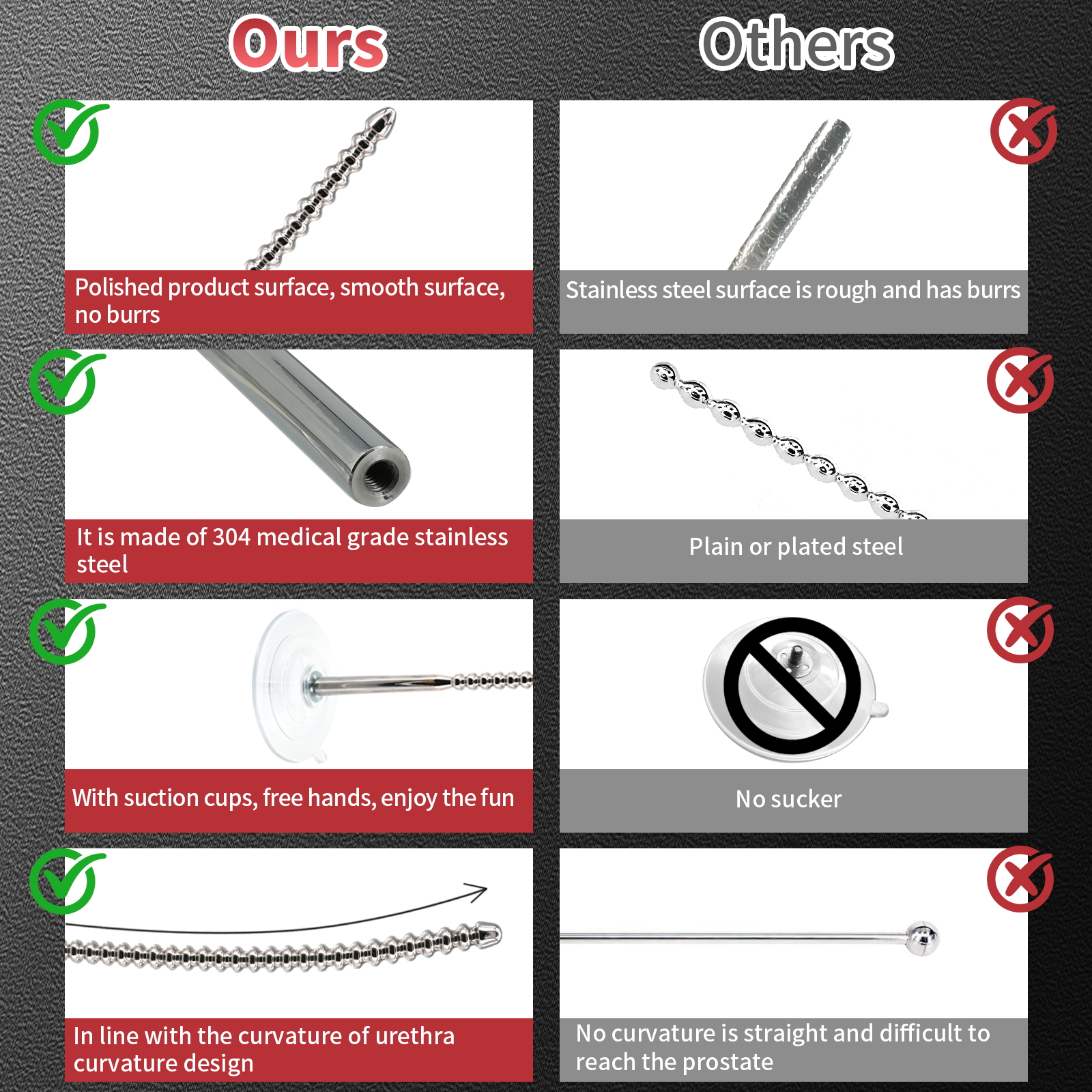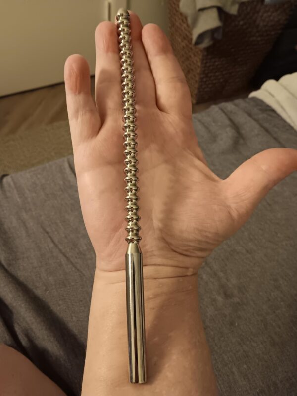 This is hands down a beautiful piece. Completely stainless steel. Going over it before giving the rod its initial cleaning, I examined it thoroughly by sight and feel. No burs. No weld spots. Flawless. With a little lubricant… fuh-get-about-it. The bend near the end upset me at first when I saw it thinking it was damaged, but when I reexamined the posting for it, they described a slight curve. Smaller gages I can see, but this is the thickest piece. No curve, lol. It’s just a slight bend near the top. Plus, being stainless steel. Cleanup is definitely easy. I just wish it came with some sort of cloth baggie to put it in. This isn’t something you want knocking in your drawer.