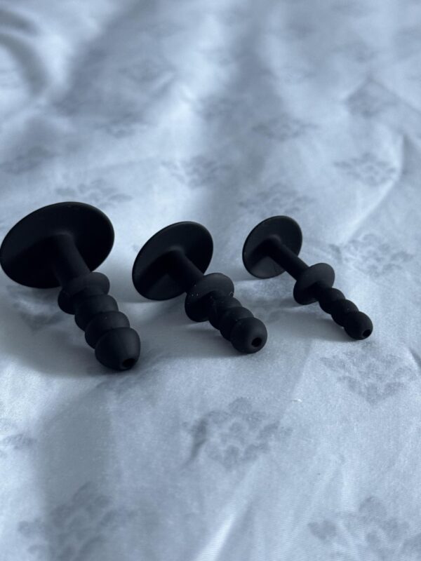 These are great for beginning sounders but also give the option to wear them away from home. They insert easily and stay in surprisingly well. However, they’re not difficult to remove when you’re ready. The three sizes make it easy to start small and then expand to a larger size. Each piece come with a small plug for the end that pops out easily for any fluids to come out.
